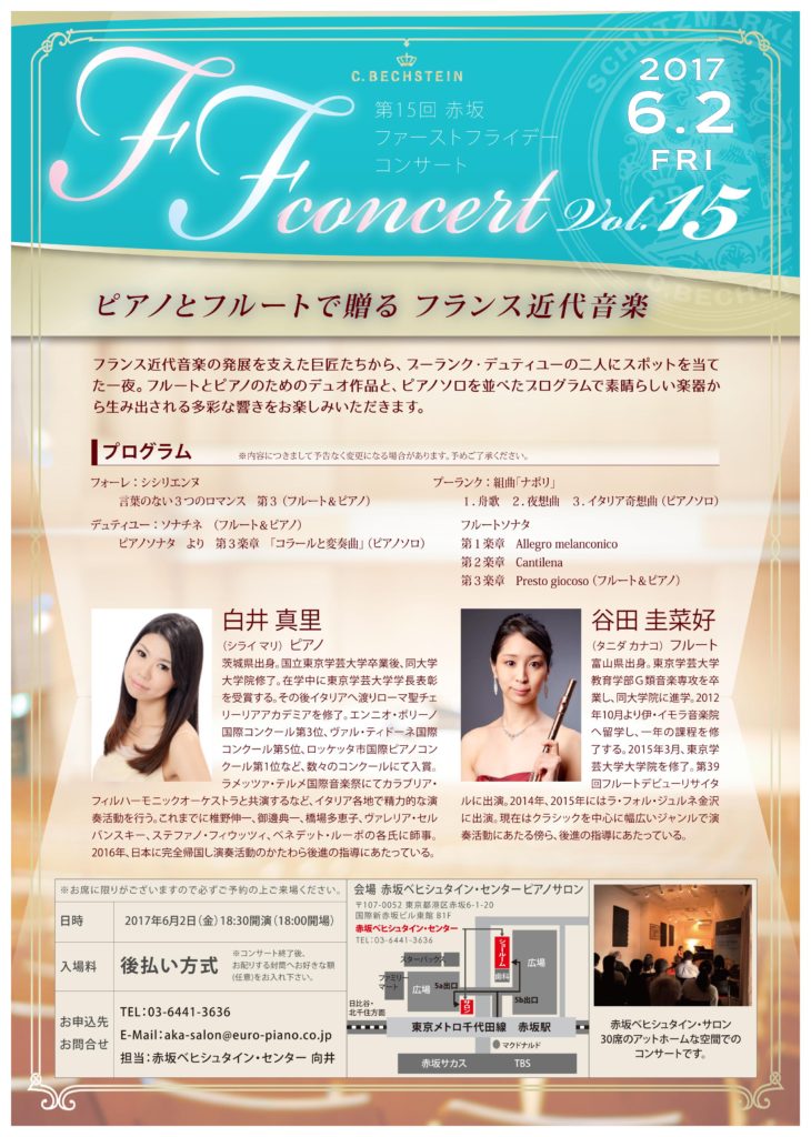 フルートの谷田圭菜子さんと、赤坂でデュオコンサートを行います♪